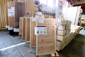 いつも世話になっている材木屋さん『菱元屋』 会場に入ると、木の香りがいい香り~♪ 色んな種類の無垢板や、意匠的に使う物、木の外壁材など、た~くさんの木材を見てきま した。木のぬくもりや、一つとして同じでない表情、色味、香り、やわらかさ。木には沢山の 魅力がありました。