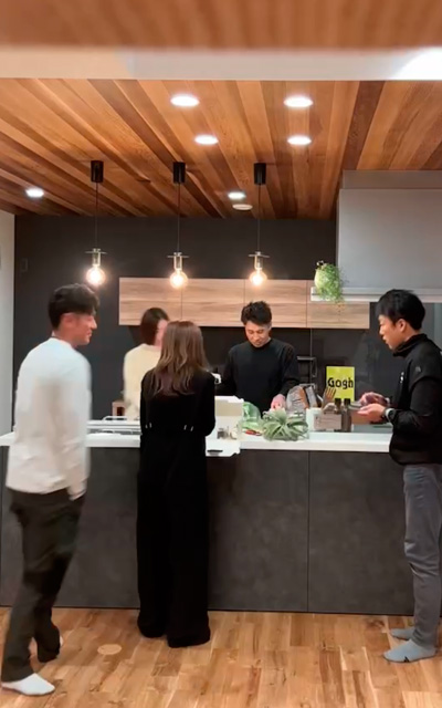 キッチンに立つお施主様。コーヒーを入れてくれてます♪みんなでワイワイとキッチンに集まれるアイランドキッチンはいいですね♡