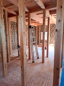 柱の間にSWパネルが入りました。整理整頓、きれいに掃除された現場です♪