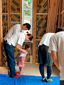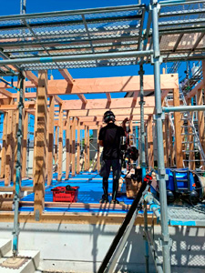 雨が強く降ってきましたが、手際よく順調に建て方を進めました。