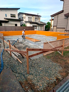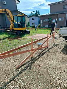 建物の位置や高さの基準を確定するための仮設作業『やり方出し』をしました。