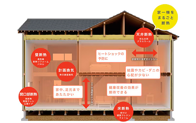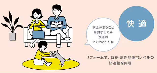 リフォームで新築・高性能住宅レベルの快適性を実現。冬暖かく、夏涼しい暮らしをかなえます。