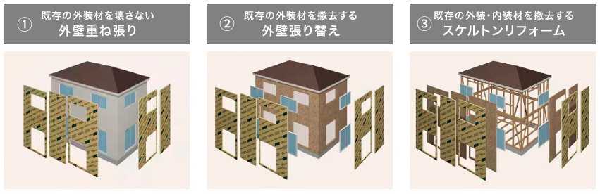 既存住宅の状態に合わせて、3種類の断熱リノベーションがあります