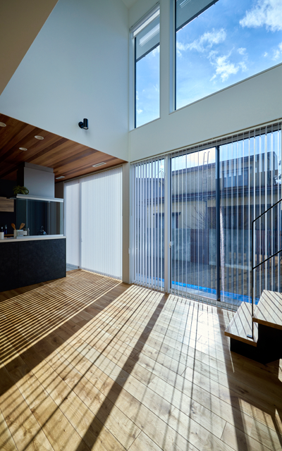 T様邸は、玄関ホールやリビングから坪庭を眺めることができ、南面に設けた吹き抜けと大きな窓が特徴的な明るく開放感ある住まい。家の中にいても自然を楽しめる豊かな暮らしができる素敵なおうちです 🙂