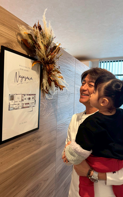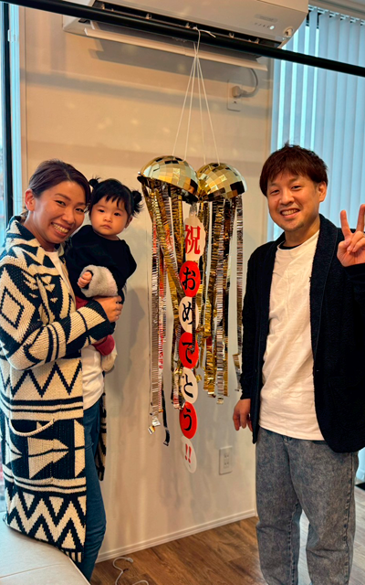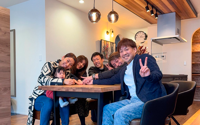 N様ご家族と記念写真です 🙂 N様の理想を叶えるために二人三脚で家づくりをしてきました♪お2人の好きが詰まった素敵なインテリアと快適なお住まいで楽しく健康に過ごして欲しいです。これから動きが活発になる娘さんが、このお家で思い切り元気いっぱい遊べるといいですね♪