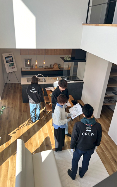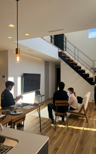 事前に色々と調べたり勉強されたりして、家づくりを前向きに検討されているお客様のご来場が多かったです。ひと通り見学をした後は、座ってじっくりと家づくりについて会話をすることができました。