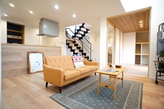 黒のガルバ×木×タイルのシャープでモダンな外観ですが、玄関を入ると白×木のナチュラルなインテリアになっています。間仕切りの少ない広々とした室内は、自分達の好きなように家具のレイアウトが可能。子供たちが元気に走り回れるゆとりもあります。キッチン周りは、子供が使うカウンターデスクや、お便りが貼れるホーローパネル、充実した収納etc、、、奥様にうれしいアイディア満載です。