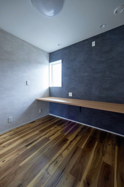 2階4.5帖のご主人ワークルーム。奥行60センチのデスクカウンターを付けました。