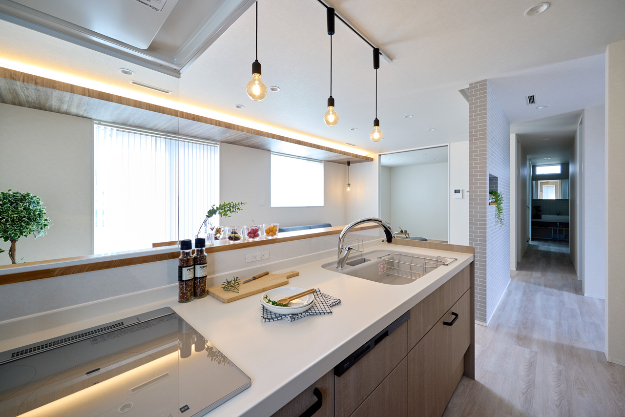 キッチン仕事をしていても、家族の様子がよくわかる対面式キッチン。