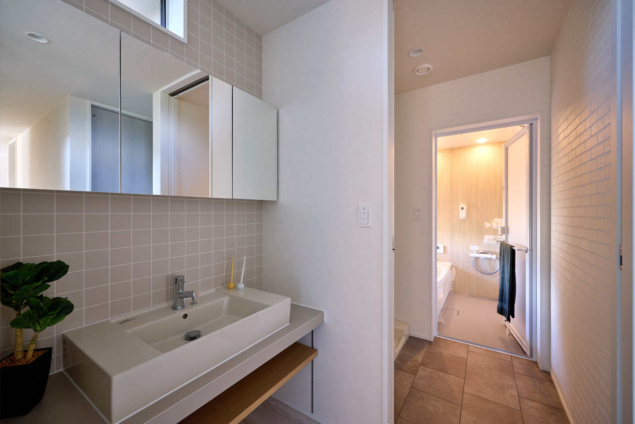 浴室→脱衣→洗面→ランドリーが一直線!忙しいご夫婦に嬉しい動線。