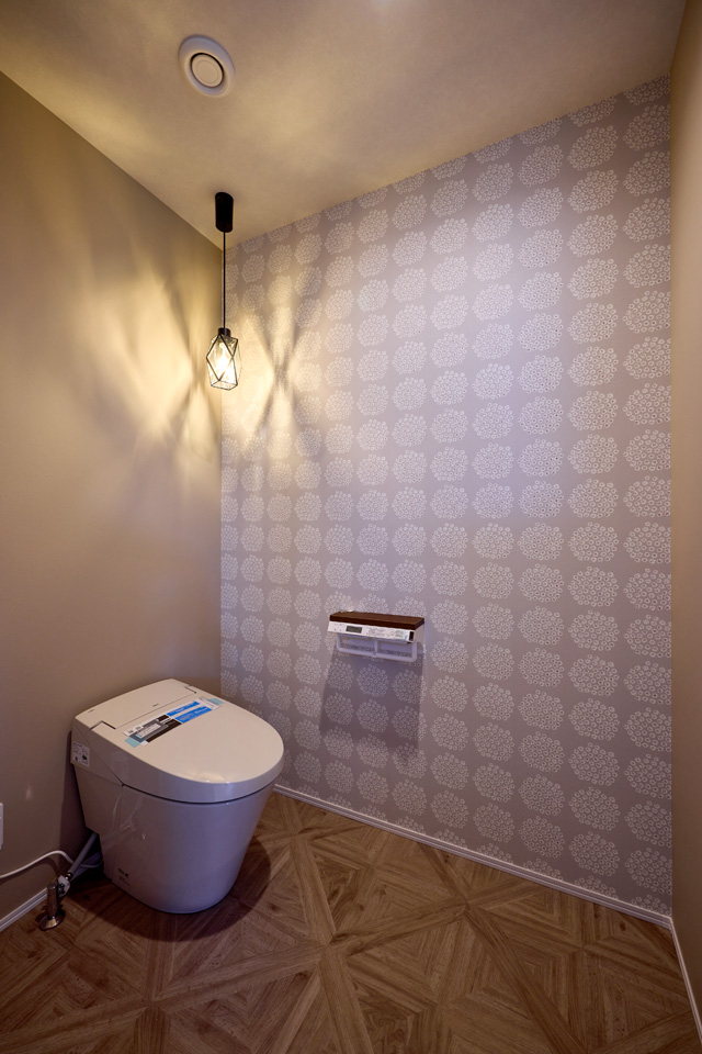 主の照明はダウンライトを配し、天井や壁を照らす照明やペンダント照明で、シンプルでお洒落な空間になりました。