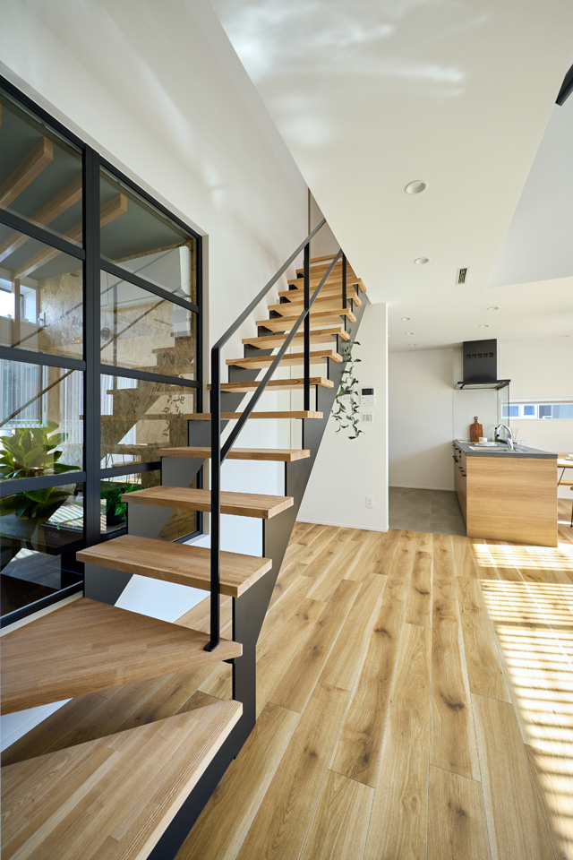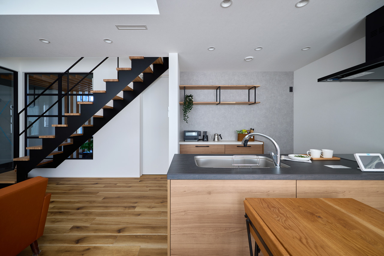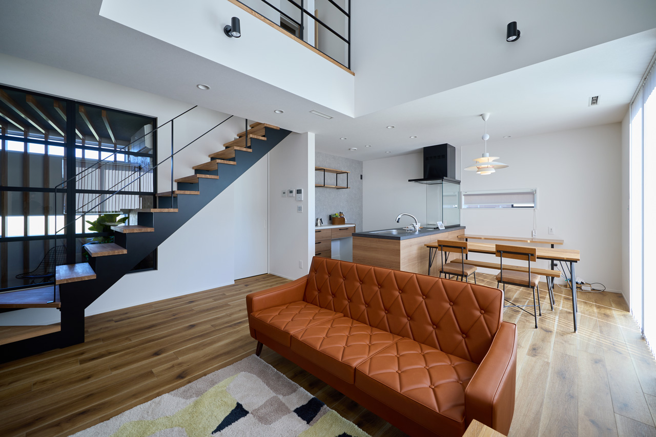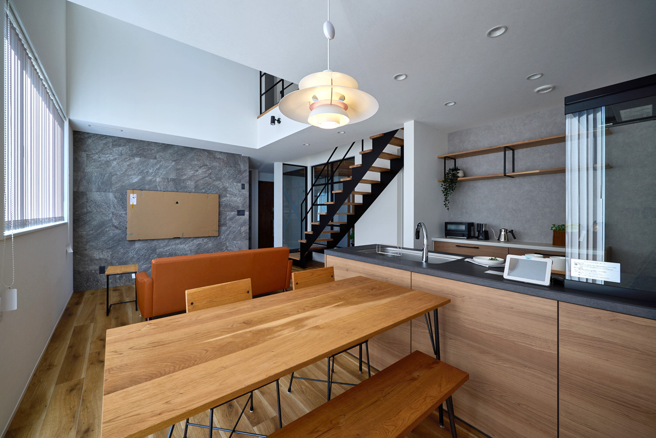 ワンルームに配したLDK+階段は、家族がどこにいてもコミュケーションが取れる♪