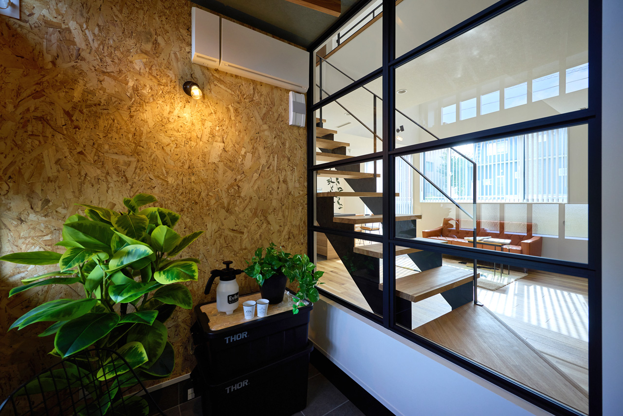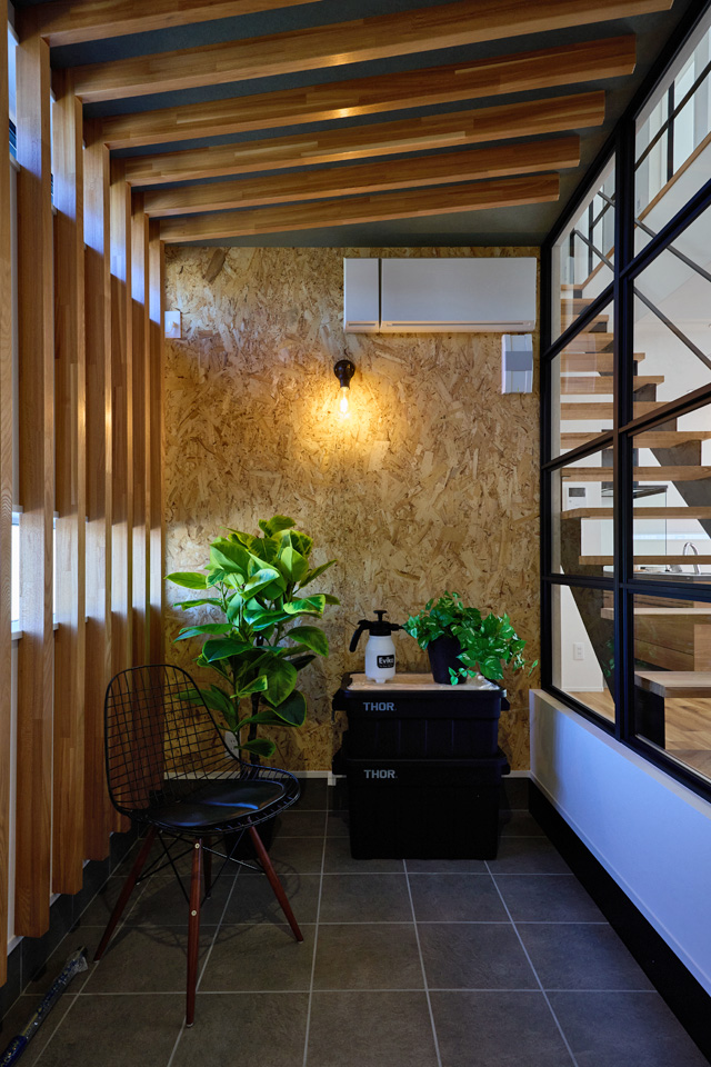 玄関土間は、ご主人の釣り道具やロードバイクなどが置ける趣味スペース。