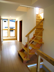 玄関の窓から明かりがたっぷり。 階段を上がってリビングへ。